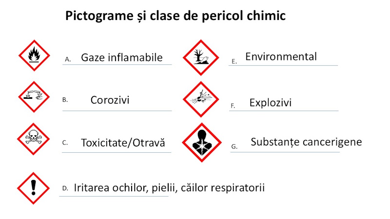 Dna profesor Ionescu: De asemenea, trebuie să identificăm pericolele chimice și pictogramele corespunzătoare.