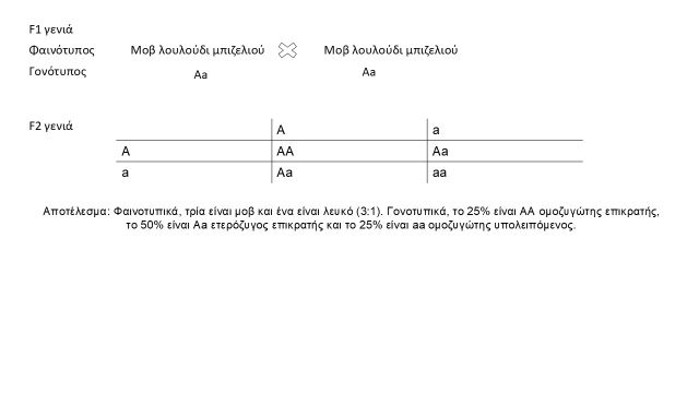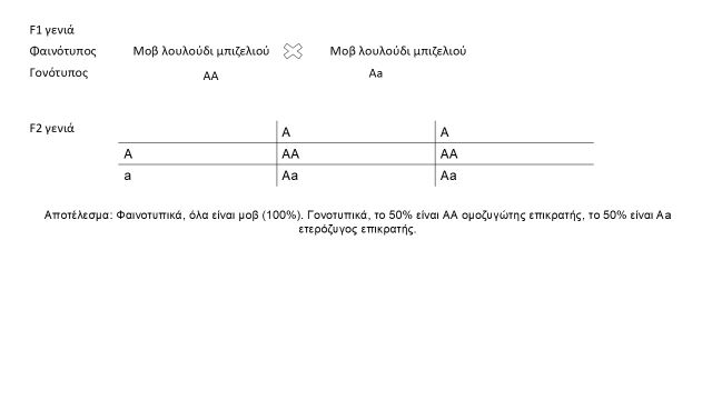 Πίνακας Punnett 2Εσείς και μερικοί συμφοιτητές μόλις επιλέξατε τον πίνακα Punnett 2, επιβεβαιώνοντας ότι όλοι οι απόγονοι F1 στο πείραμα του Μέντελ θα πρέπει να είναι ετερόζυγοι μοβ (Aa). Έχετε συγκεντρωθεί γύρω από έναν πάγκο εργαστηρίου με τη Δρ Φόστη, συγκρίνοντας σημειώσεις και εξασκούμενοι στην σχεδίαση πινάκων Punnett. Εσείς: Ναι, φαίνεται ότι έχουμε όλα τα άνθη μοβ στην γενιά F1. Αλλά πού είναι το λευκό χρώμα που είδαμε αρχικά; Δρ Φόστη: Καλή παρατήρηση. Η λευκή χρωματική εμφάνιση εμφανίζεται στην γενιά F2, όχι στην F1. Ας απεικονίσουμε πώς συμβαίνει αυτό. Προχωρήστε και ανοίξτε μια νέα σελίδα στο tablet σας, και θα προσπαθήσουμε να προβλέψουμε την επόμενη σειρά απογόνων χρησιμοποιώντας έναν άλλο πίνακα Punnett. Aλίκη: Σωστά, λοιπόν για την F2, θα διασταυρώσουμε δύο από αυτά τα ετερόζυγα μοβ άνθη, και τα δύο Aa. Με αυτόν τον τρόπο, μπορούμε να δούμε αν θα εμφανιστεί ξανά το λευκό χαρακτηριστικό. Δρ Φόστη: Ακριβώς. Θα επισημάνουμε τα αλληλόμορφα κάθε γονέα κατά μήκος της κορυφής και της αριστερής πλευράς. Στη συνέχεια, θα συμπληρώσουμε τους τέσσερις συνδυασμούς που μπορούν να παραχθούν. Ας το εξετάσουμε βήμα προς βήμα για να οπτικοποιήσουμε ποιοι γονότυποι επανεισάγουν τον λευκό φαινότυπο. Παίρνετε ξανά το Tablet και την γραφίδα σας και ανοίγετε μια κενή σελίδα στο Tablet. Επιλέξτε την σωστή απεικόνιση του πίνακα Punnett! Πίνακας Punnett 3: