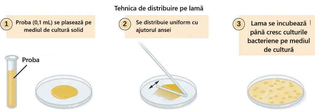 • Cuantificarea încărcării bacteriene: Inocularea straturilor bacteriene pe lame de agar