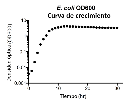 Ejemplo de curva de crecimiento de Escherichia coli de densidad óptica a 600 nm (OD600). https://www.jove.com/v/10511/growth-curves-cfu-and-optical-density-measurements