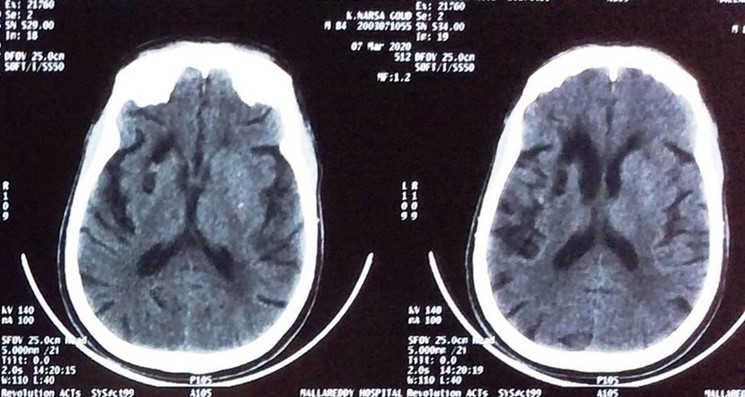 Report: "Chronic (old) lacunar infarct in the left internal capsule. No evidence of acute intracranial hemorrhage or new large territorial infarct."