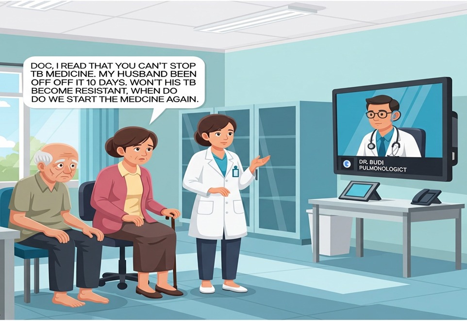 The patient's wife, who is now present, asks via teleconference, "Doc, I read that you can't stop TB medicine. My husband has been off it for 10 days. Won't his TB become resistant? When do we start the medicine again?" This is a difficult clinical decision: Balancing the risk of DILI recurrence versus the risk of untreated or resistant TB. What is your plan? |