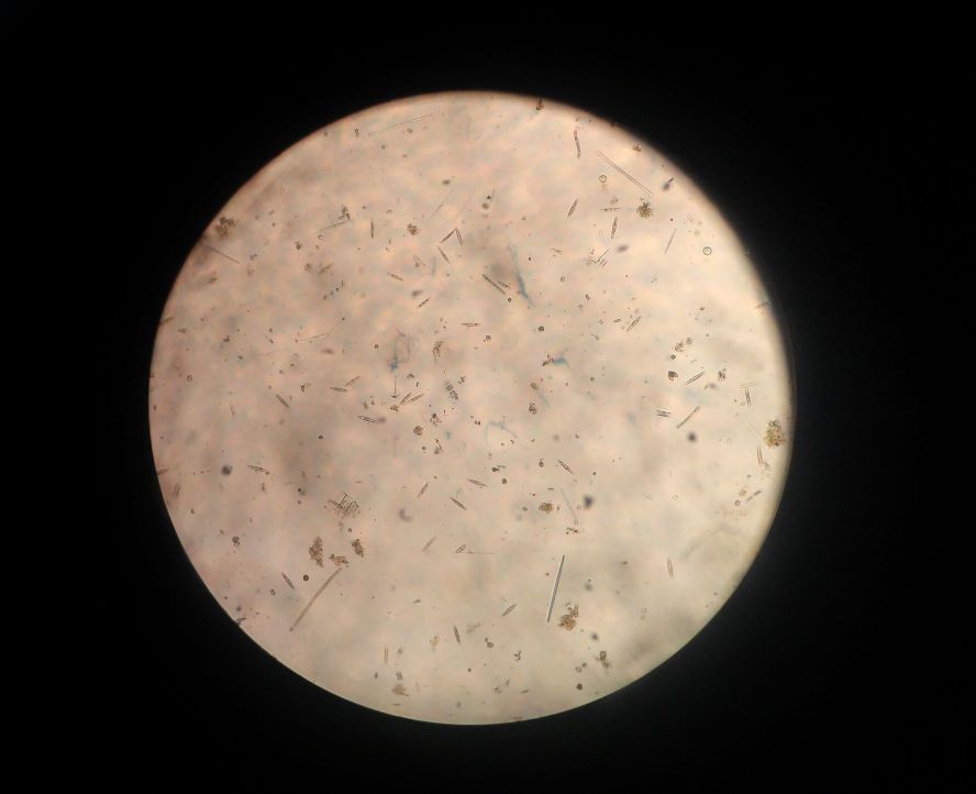 Αντικειμενικός φακός 4x (χαμηλής ισχύος)Καθώς αρχίζετε να παρατηρείτε το δείγμα του νωπού παρασκευάσματος στο οπτικό μικροσκόπιο σε μεγέθυνση 4Χ, παρατηρείτε κάποιες λεπτομέρειες, αλλά διαπιστώνετε ότι δεν έχουν το επίπεδο λεπτομέρειας που ελπίζατε.